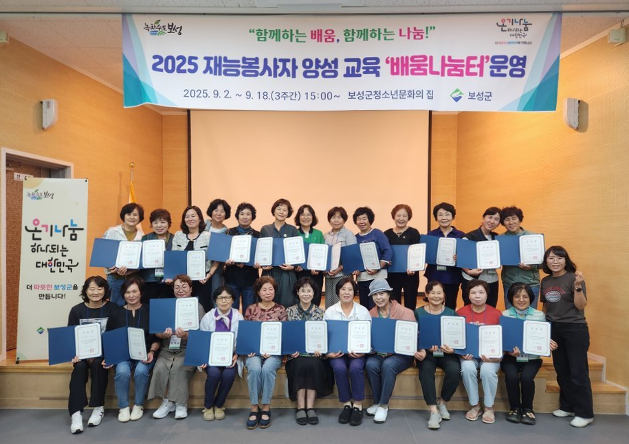보성군은 지난 18일 지역사회 복지 수요와 고령화에 대응하기 위해 운영한 2025 재능봉사자 양성 교육 ‘배움나눔터’를 성황리에 마쳤다.