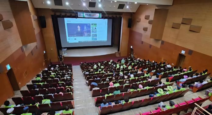 9월 8일 벌교 채동선음악당에서 열린 공익형 일자리 직무교육에 어르신 254명이 참석해 재활용품 분리배출, 감염병 예방, 안전수칙 등을 배우고 있다. 사진=문금주