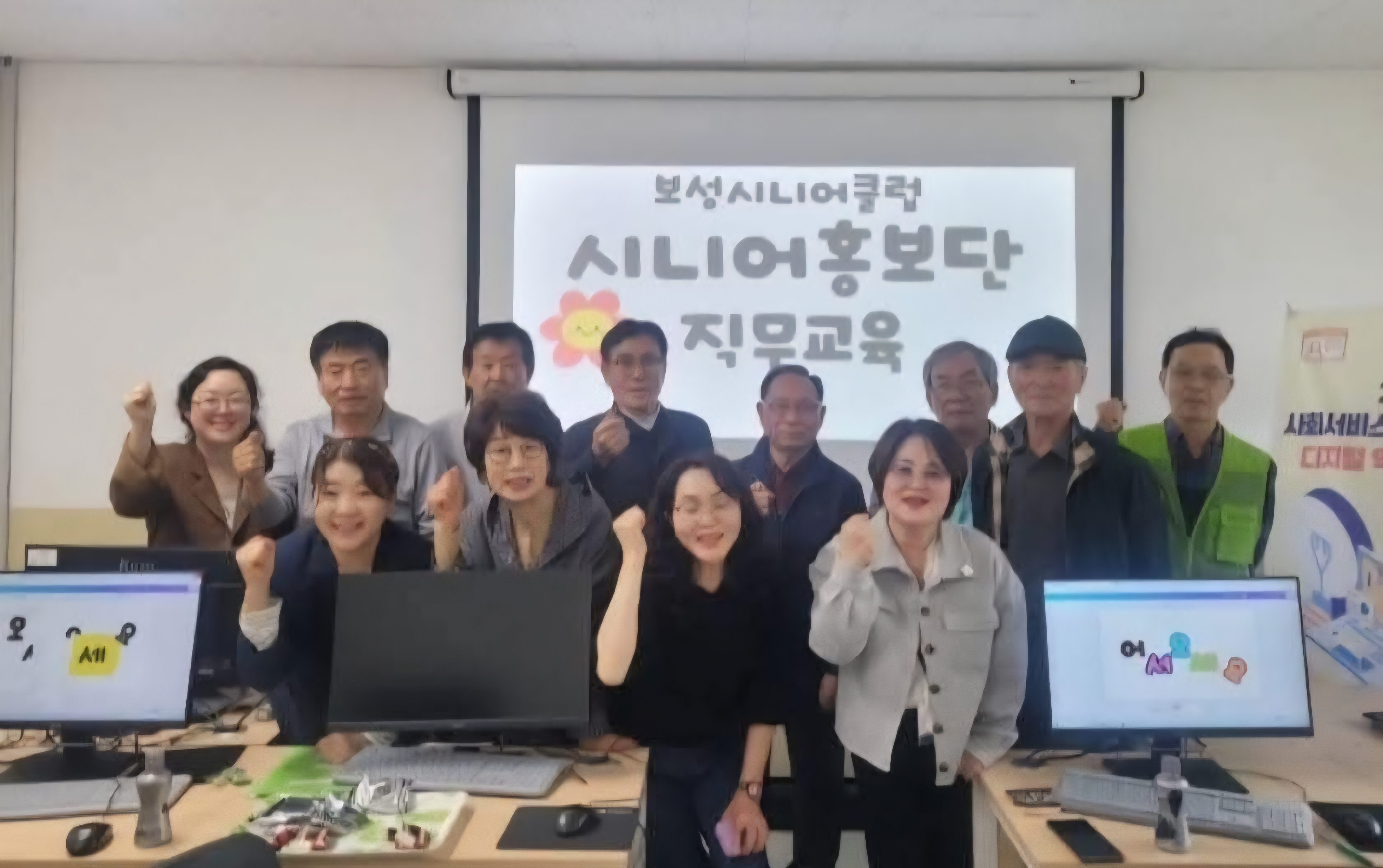보성시니어클럽 홍보단 직무교육에 참여한 어르신들이 파이팅을 외치며 활기찬 활동을 다짐하고 있다. 홍보단은 12명으로 구성되어 일자리 현장을 기록하고 지역사회의 따뜻한 이야기를 전하며, ‘보성시니어신문’과 SNS 채널을 통해 널리 알리고 있다. 사진=보성시니어클럽