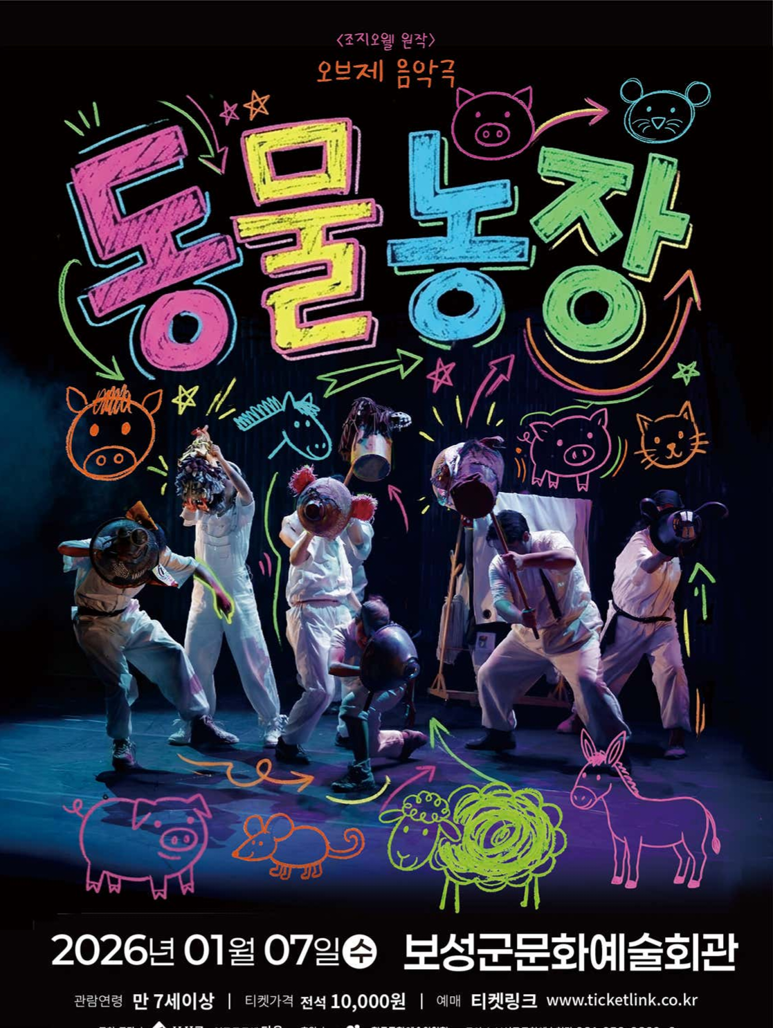 가족극 ‘동물농장’이 오는 2026년 1월 7일 오후 7시 문화예술회관 공연장 무대에 오른다.