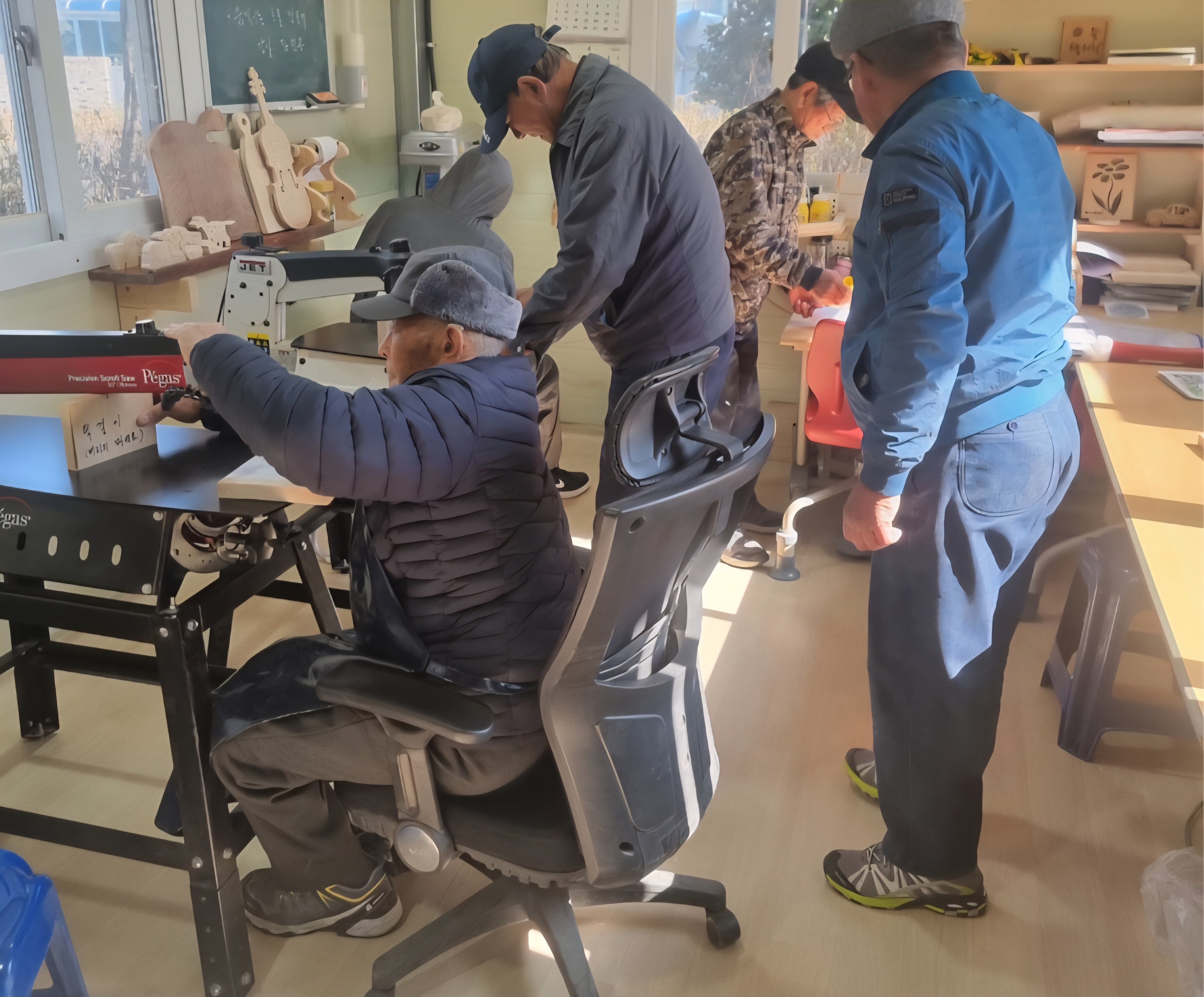 보성시니어클럽 1층 목공실에는 매일 아침 나무를 깎고 다듬는 경쾌한 소리가 울려 퍼진다. 정성껏 완성된 목공품은 지역아동센터·어린이집·경로당 등으로 전달되어 따뜻한 나눔으로 이어진다.