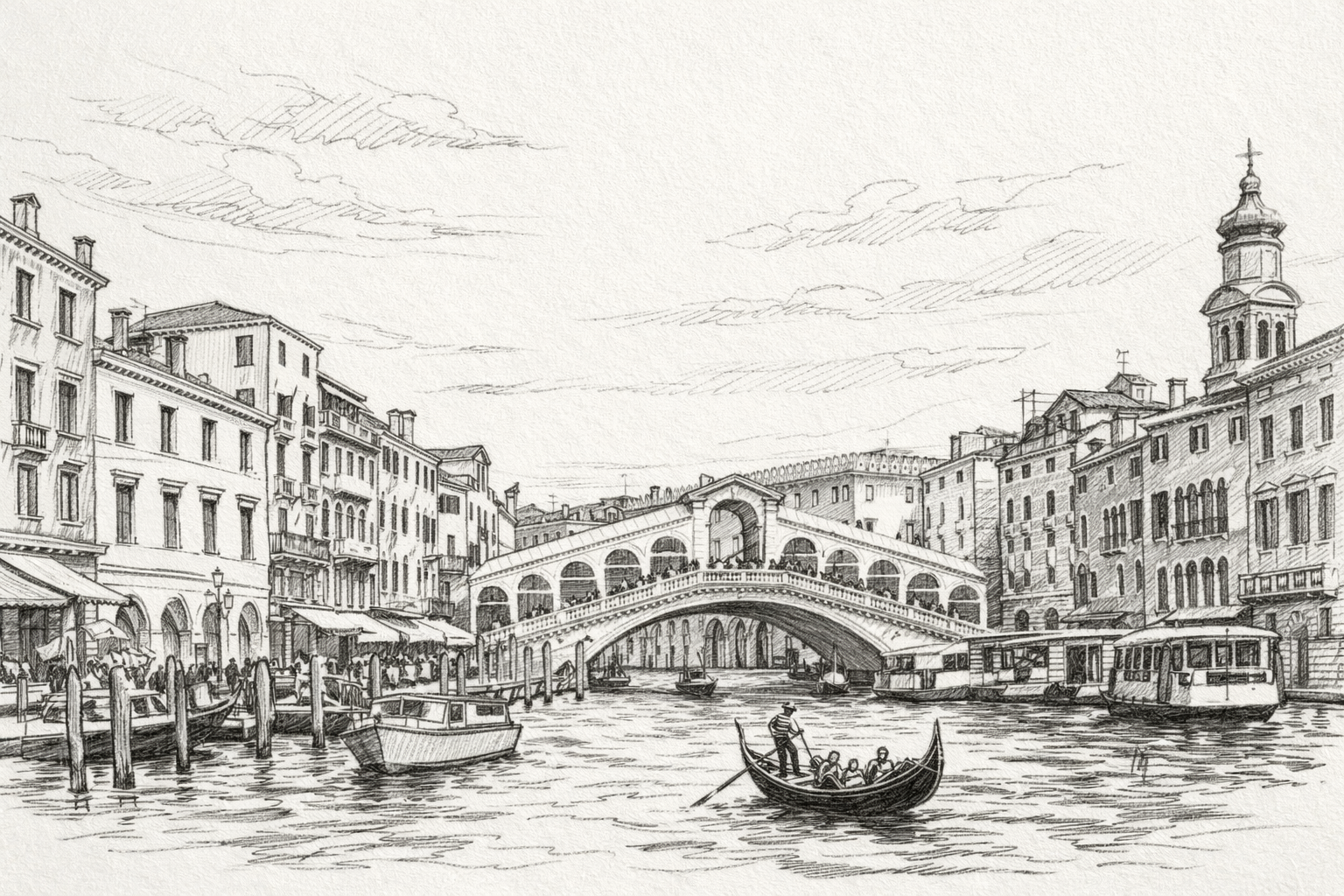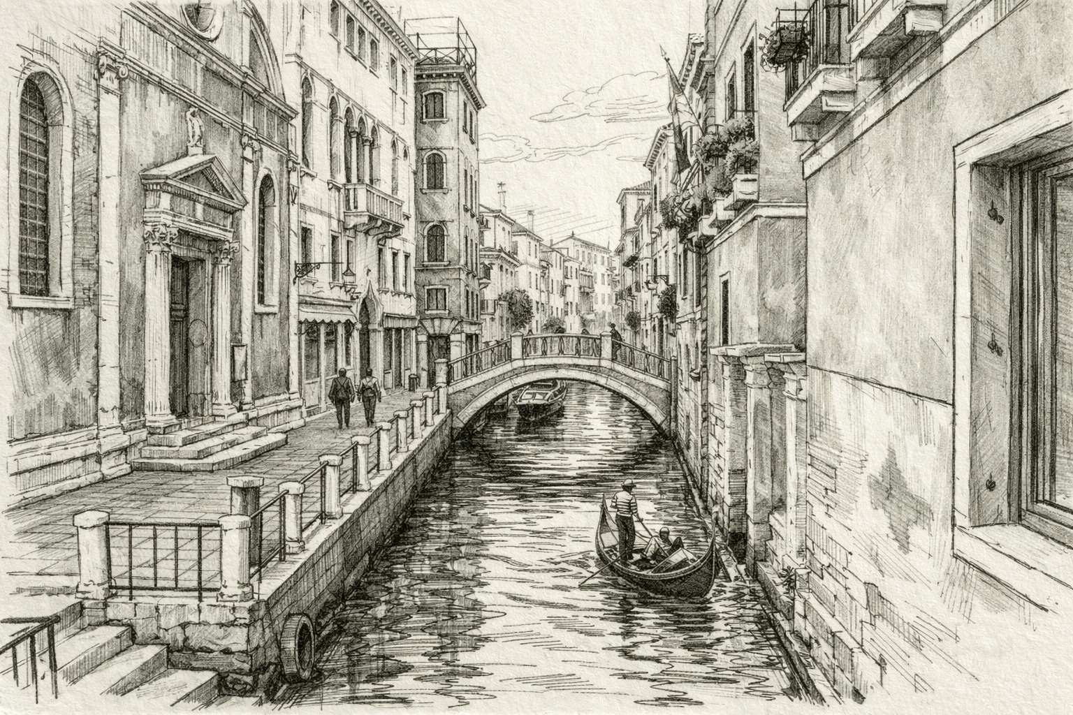 농사도 어렵고 사람이 살기에도 불편한 땅이었다. 그러나 바로 그 불리함이 베네치아의 운명을 바꾸었다. 베네치아 사람들은 육지로 나가지 않았다. 오히려 더 깊은 바다 속 석호로 들어가 도시를 세웠다. 그 결과 베네치아는 성벽 대신 바다로 둘러싸인 도시가 되었고, 외부 침입이 쉽지 않은 천연 요새가 되었다. 사람들은 개펄 위에 나무기둥을 박고 건물을 세우고, 운하를 파서 물길을 만들고, 섬과 섬 사이를 다리로 연결했다. 그렇게 해서 150여 개의 섬, 180여 개의 운하, 400여 개의 다리로 이루어진 도시가 탄생한다.