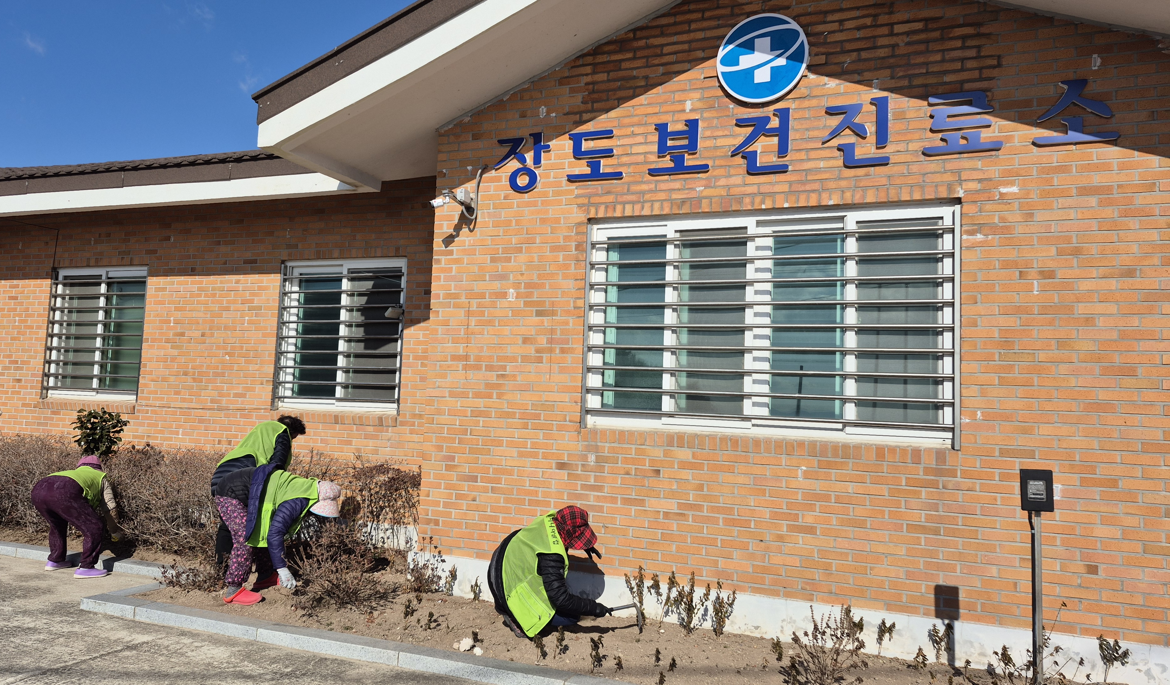 보성시니어클럽 생활밀착지원서비스 참여 어르신들이 장도보건소 일원에서 환경정리 활동을 펼치며, 주민들이 쾌적하고 안전하게 공공시설을 이용할 수 있도록 돕고 있다. 사진=보성시니어클럽