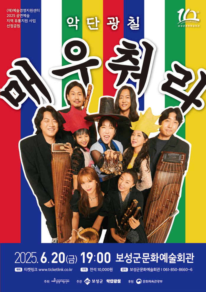 보성군이 창작 국악밴드 ‘악단광칠(ADG7)’의 공연 ‘매우 춰라’를 6월 20일 오후 7시 보성군문화예술회관에서 개최한다.