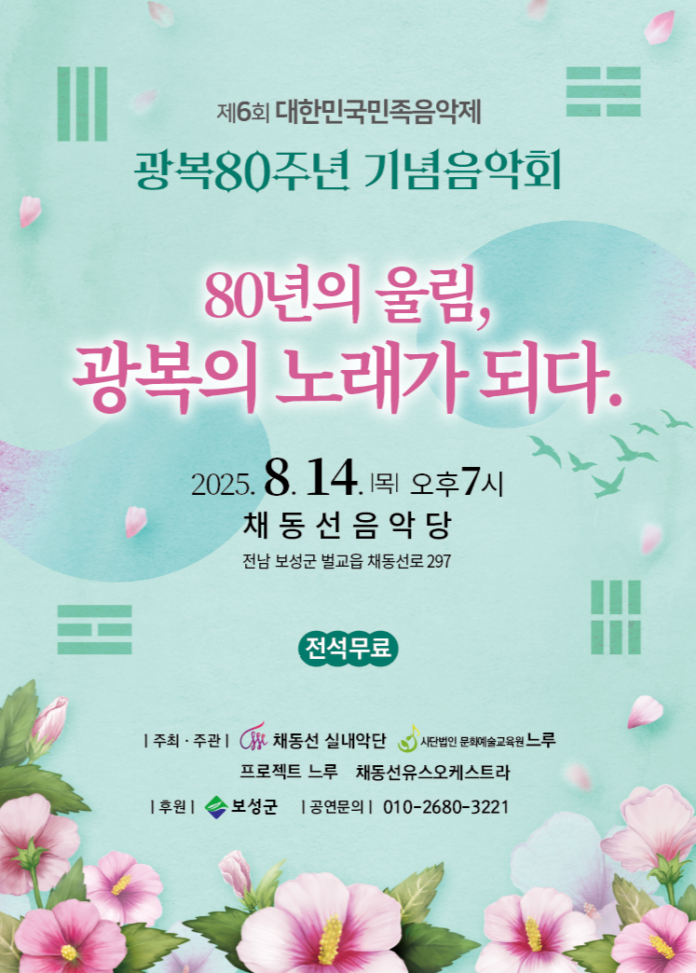 김정호 예술감독은 “광복 80주년을 맞아 벌교와 채동선의 정신을 중심으로 한국 민족음악의 새로운 가능성을 제시하고자 했다”며 “음악이 줄 수 있는 깊은 울림으로 관객과 역사적 의미를 나누고 싶다”고 말했다.