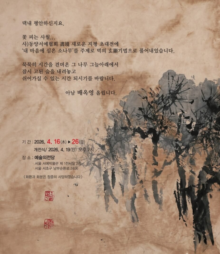 배옥영 작가는 오는 2026년 4월 16일부터 26일까지 서울 예술의전당 서울서예박물관에서 열리는 사단법인 동양서예협회 ‘書境 새로운 지평’ 초대전에 참여한다.